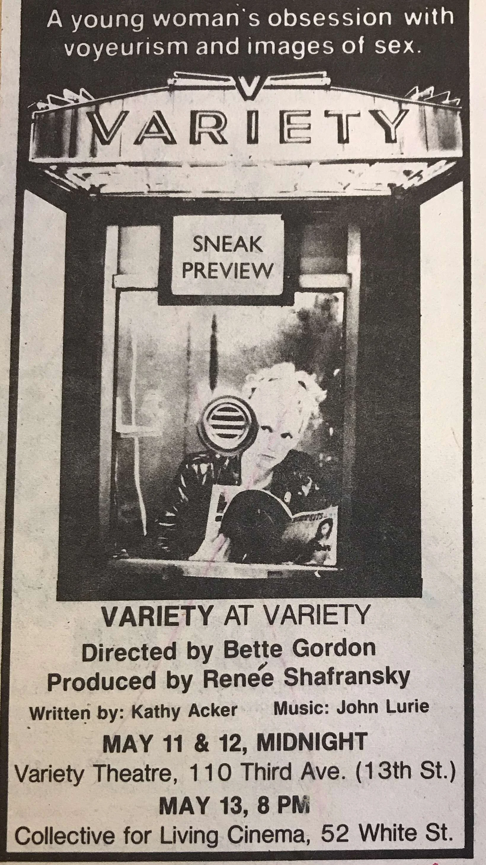 Bette Gordon was interviewed on October 19, 2020. You can buy Variety’s new Blu-ray from Kino-Lorber here, or stream it on The Criterion Channel, Kanopy, Sundance Now, and Mubi. Criterion is also streaming several of her other shorts and features.